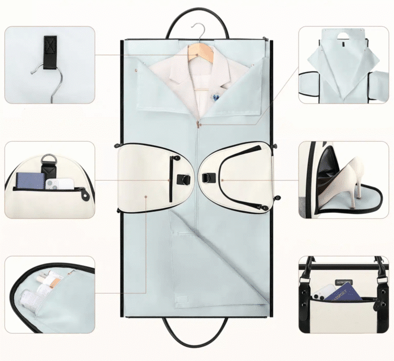 Ce modèle 2 en 1 combine un sac de voyage spacieux et un rangement à vêtements à plat, parfait pour transporter vos chemises, robes ou costumes sans les froisser. Vos tenues restent bien pliées et prêtes à être portées dès la sortie du sac.