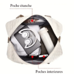 Et ce n’est pas tout : une poche étanche intégrée vous permet de ranger vos petits produits de toilette ou affaires humides séparément du reste. Parfait pour celles qui aiment voyager léger, mais bien organisées.