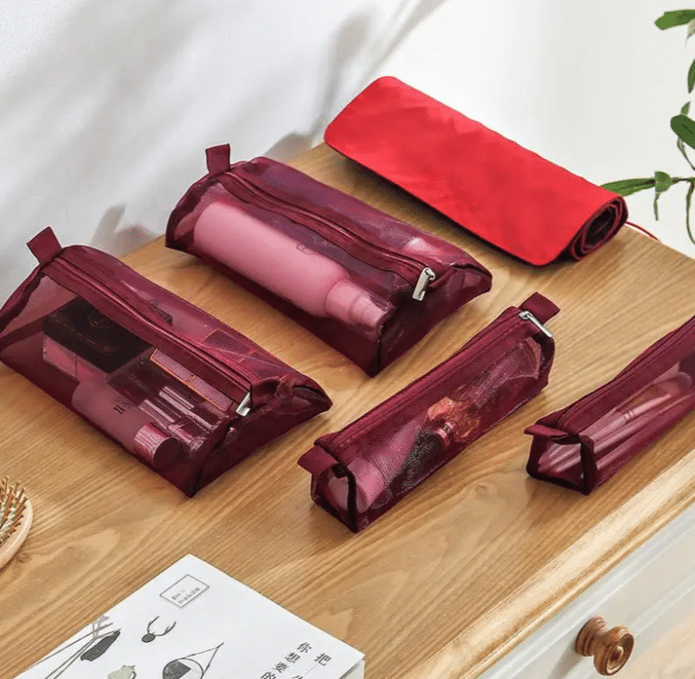 Chaque trousse est conçue en maille transparente, ce qui permet d’identifier vos produits d’un simple coup d’œil sans avoir à tout sortir.