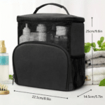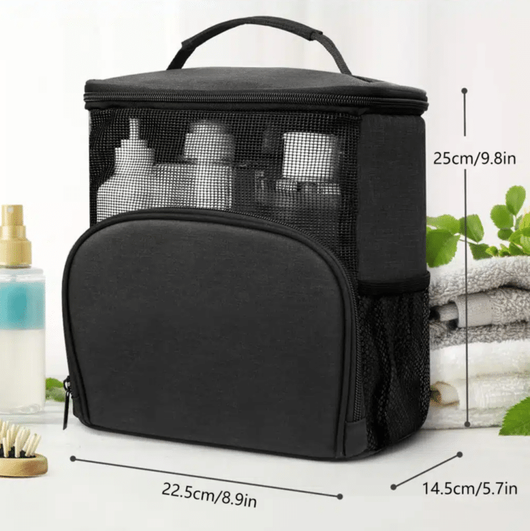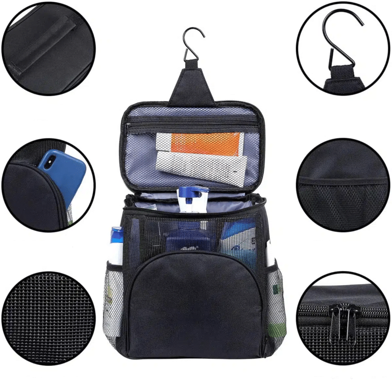 Grâce à son crochet intégré, suspendez la trousse directement dans la douche ou sur une porte pour un accès rapide. Plus besoin de tout déballer ou de poser vos affaires sur le comptoir, tout reste bien organisé et accessible.